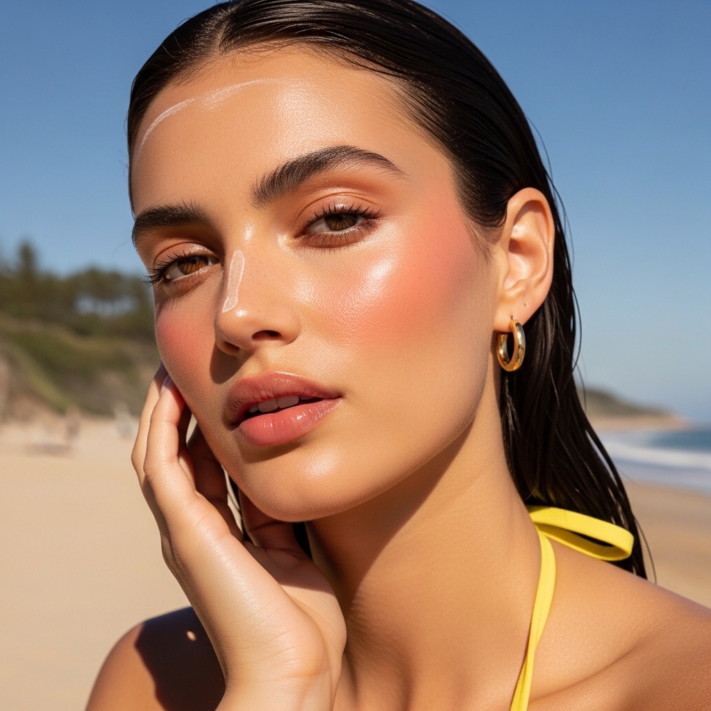 Perfect for beach days, errands, or outdoor lunches, this look reflects a modern approach to beauty where protection meets style. Its lightweight feel ensures comfort throughout the day, while the subtle tint keeps the skin looking healthy and radiant without appearing overdone.
