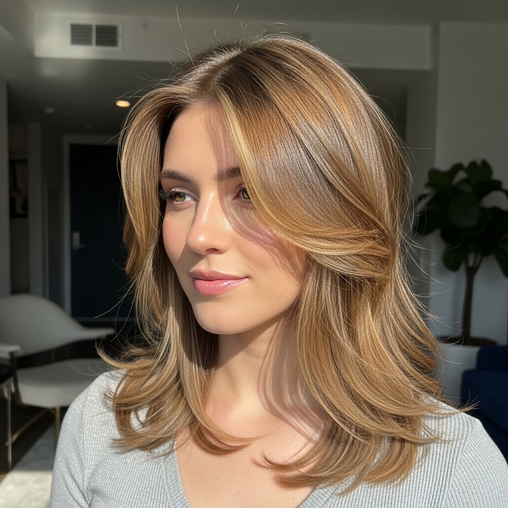 This hairstyle features soft, feathered layers that gently frame the face and create natural movement throughout the hair. The layers are subtle rather than dramatic, giving the hair a light, airy appearance that feels perfect for spring. It works beautifully for both straight and slightly wavy textures, making it a versatile choice for everyday wear or casual social events. The appeal lies in its ability to add volume without heaviness, offering a polished yet relaxed vibe. It balances comfort with trendiness by allowing easy styling while still looking refined.