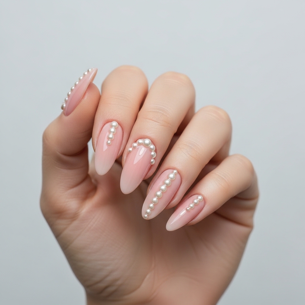 This design features a soft neutral or blush base enhanced with tiny pearl embellishments arranged in sculptural patterns. The pearls may trace the cuticle line or form abstract clusters, creating a refined three-dimensional effect. It is a favorite for weddings, formal events, and elegant daytime outings. Despite its intricate look, it remains comfortable due to lightweight detailing and smooth finishes. The balance lies in pairing minimal base color with statement accents, making it both wearable and luxurious.