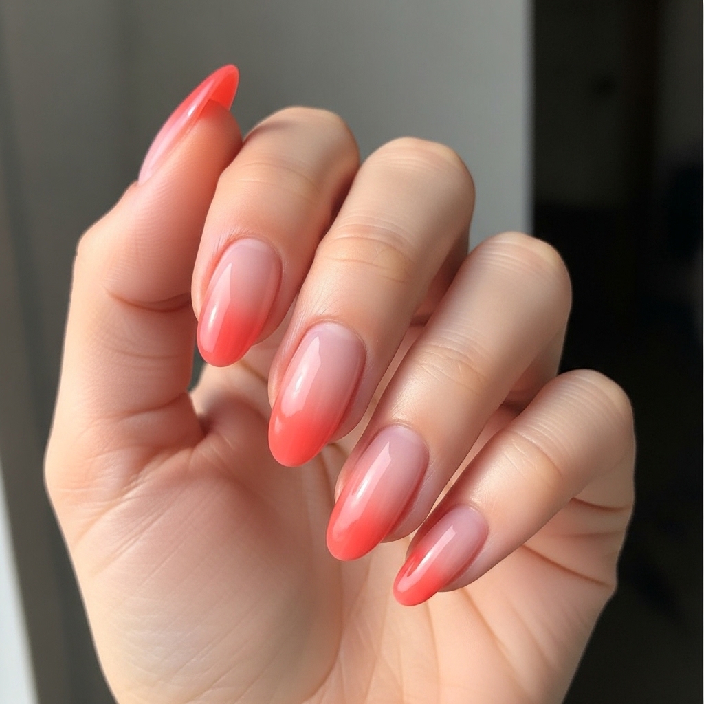 Sheer jelly nails blend translucent tones like peach, coral, and rose into a seamless gradient. The glass-like finish gives a fresh, hydrated look that feels perfect for warm weather. Ideal for beach days, casual outings, or daytime events, this design is lightweight in appearance and easy to maintain. Its charm comes from simplicity paired with modern color blending, offering a trend-forward aesthetic without overwhelming the look.