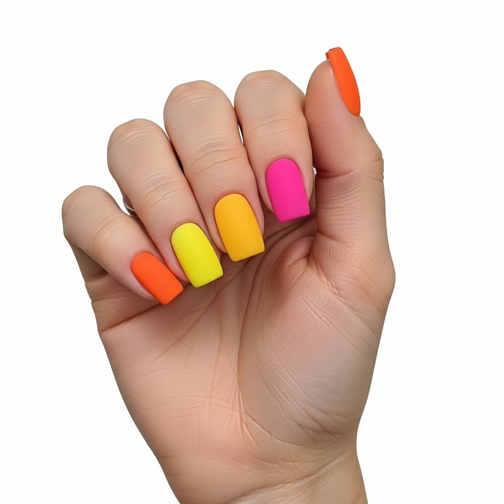 This design focuses on matte finishes in sorbet-inspired shades like mango, lemon, and raspberry. The velvety texture gives a modern twist to bright seasonal colors. It is perfect for casual wear, daytime events, and relaxed summer styling. The matte surface keeps the look understated, while the vibrant tones maintain its trend appeal.