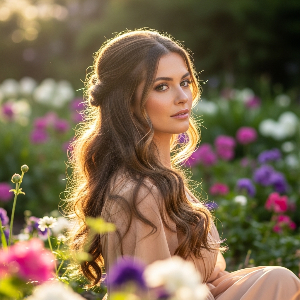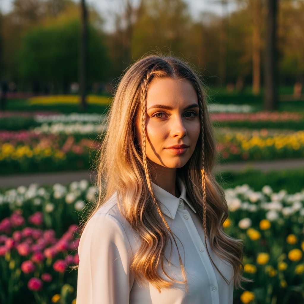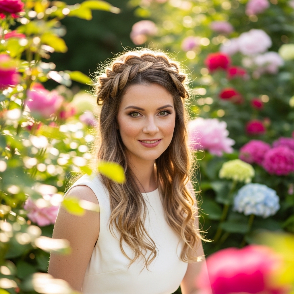 This hairstyle feels romantic and ideal for spring celebrations or outdoor events. The braid keeps the hair structured while the waves maintain softness and comfort.