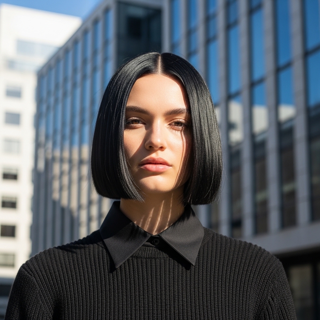 This look is ideal for professional settings and fashion forward events. Its clean lines give a modern aesthetic while the short length keeps styling simple. The shine adds elegance without needing extra accessories.