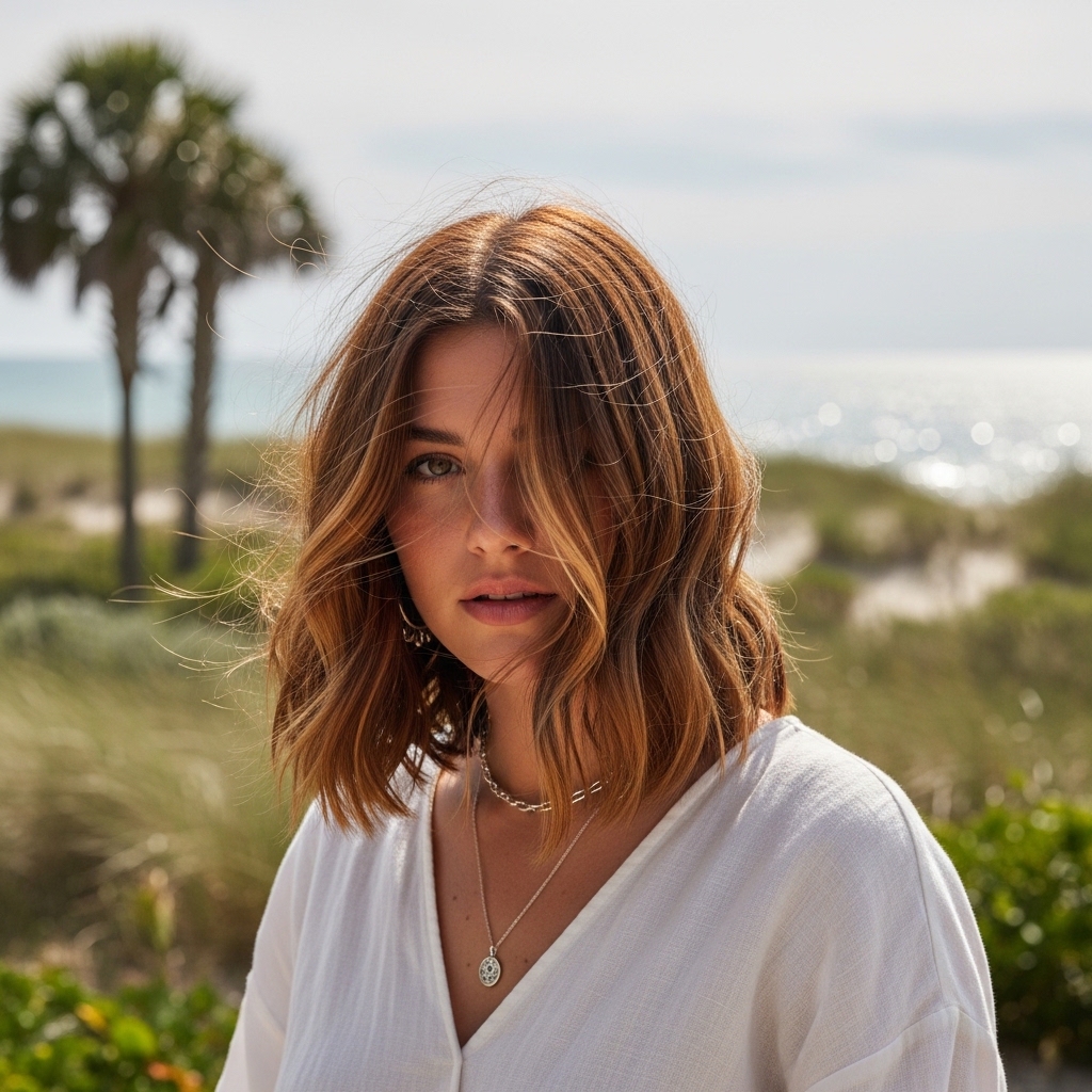 Textured beach waves offer a relaxed yet stylish option that suits almost any Easter occasion. This hairstyle features soft, tousled waves that add movement and dimension to shoulder-length hair.