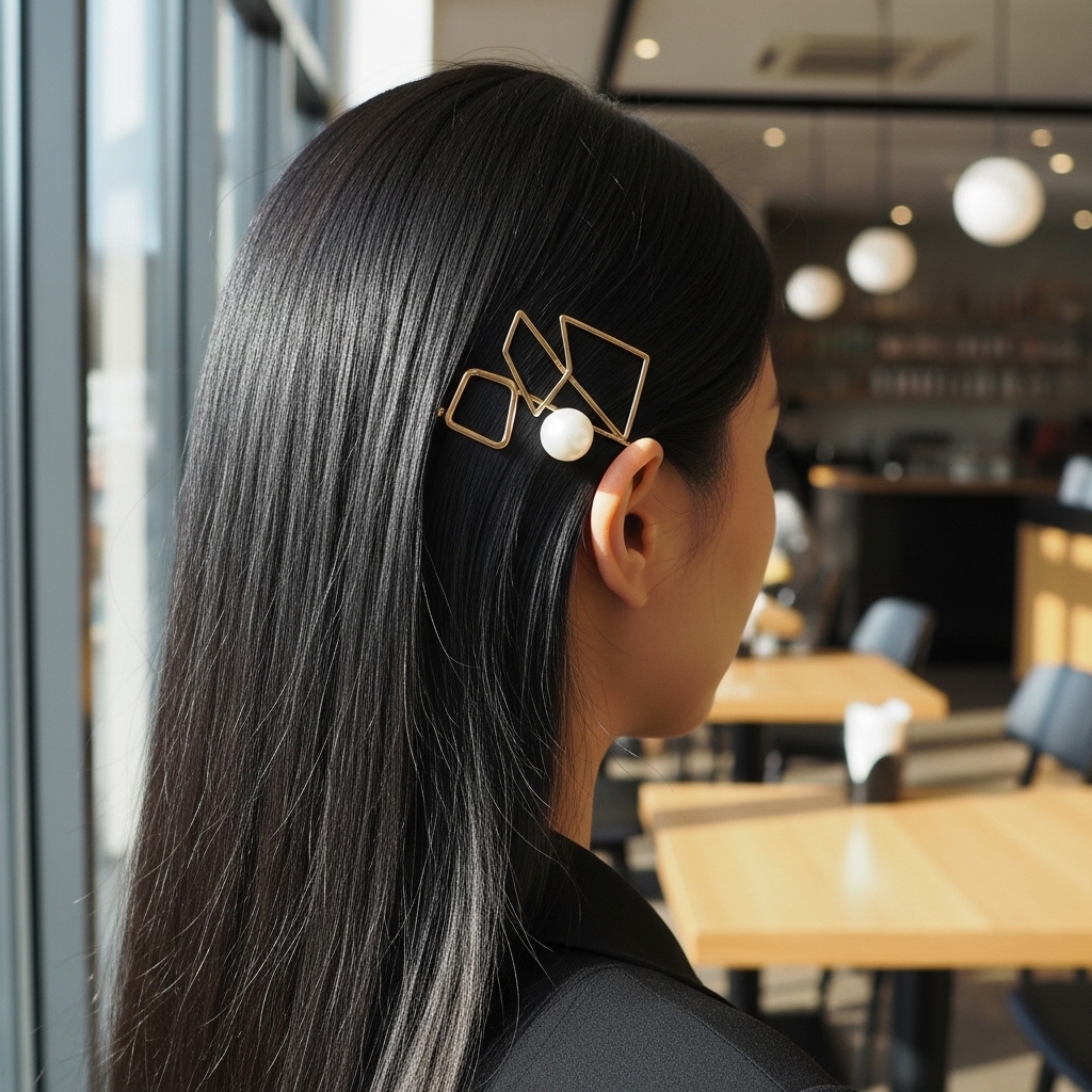 This sleek straight hairstyle is elevated with decorative clips or barrettes placed strategically along one side. The straight texture creates a clean base, while the accessories add personality.