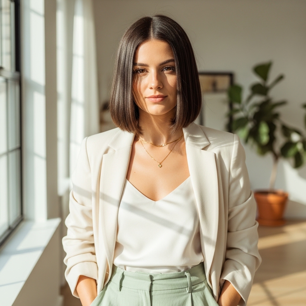 The polished blunt bob is sleek, sharp, and undeniably modern. With clean edges and a smooth finish, this hairstyle creates a bold yet refined statement.