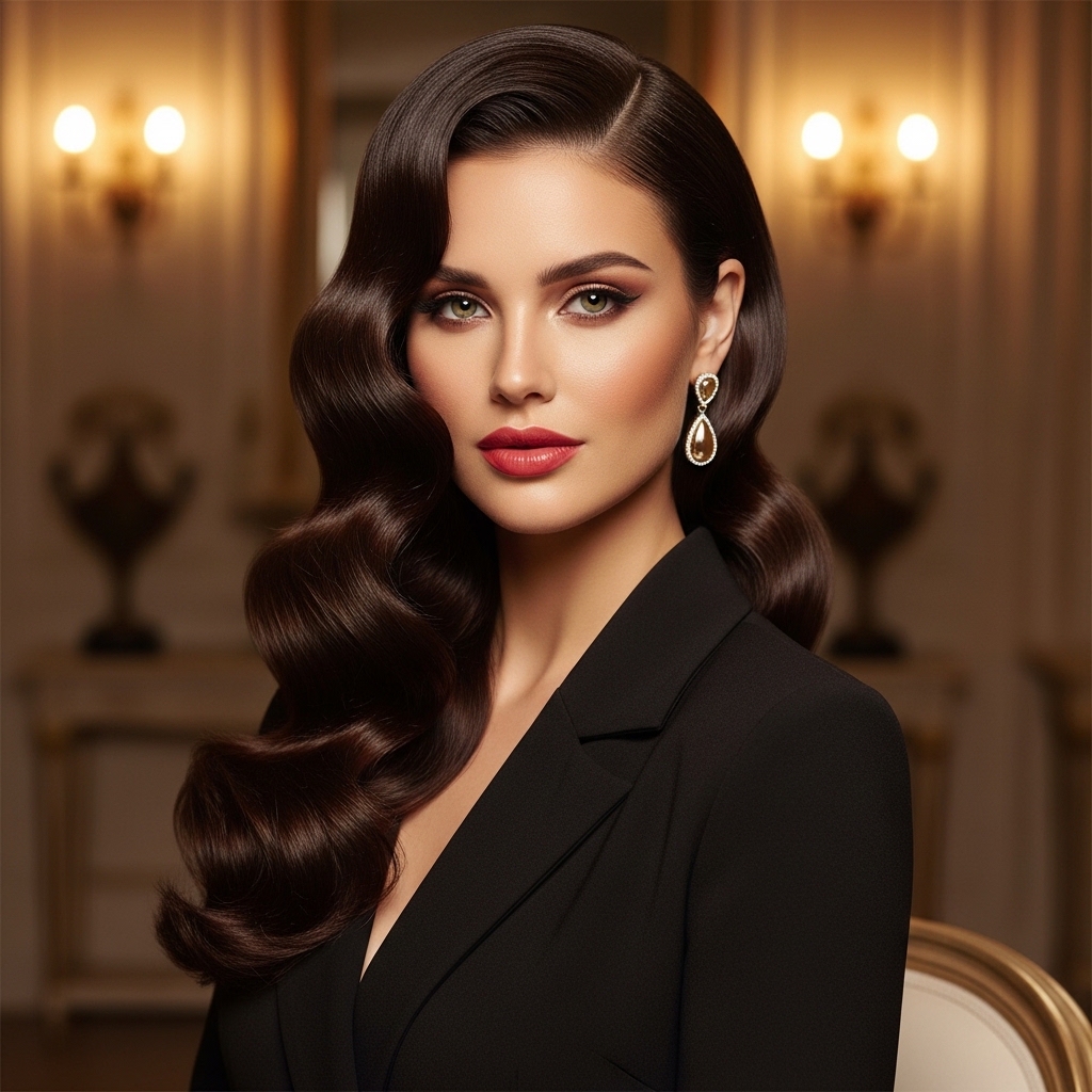 Side-Swept Hollywood Wave Glam