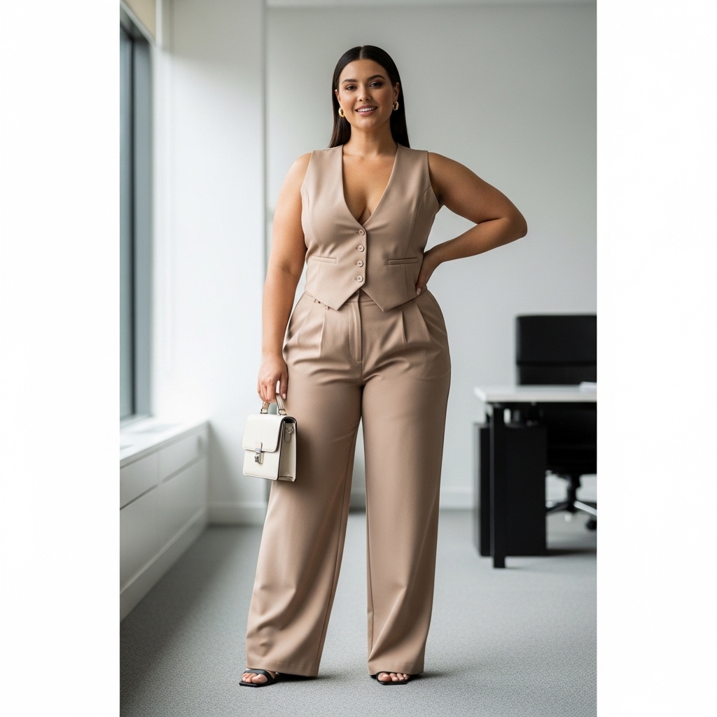 This trend introduces tailored vests paired with matching trousers, creating a sleek and contemporary outfit. The vest adds structure to the upper body, while the trousers provide comfort and movement. Ideal for professional settings or polished daywear, it delivers confidence and style. The clean lines ensure a modern aesthetic, while the tailored fit keeps it elegant.