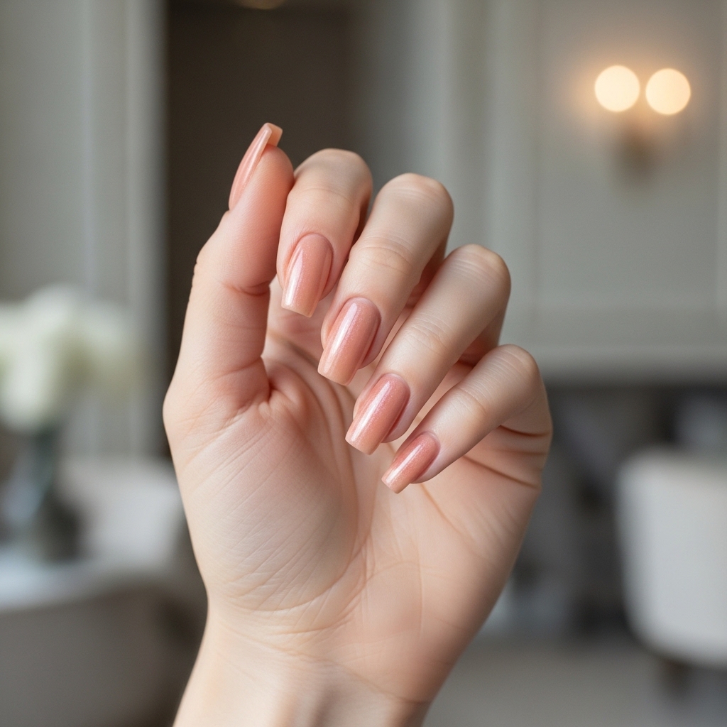 Peachy neutrals blend soft pink and warm orange tones to create a flattering, skin-enhancing shade. This look often includes glossy finishes or subtle shimmer, adding warmth without overwhelming the nails.
