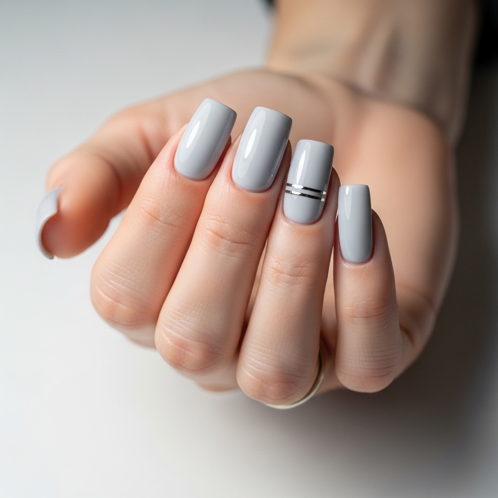 Light grey nails offer a cool, neutral alternative that feels understated yet sophisticated. This shade often appears in glossy or satin finishes, sometimes paired with minimal metallic accents.