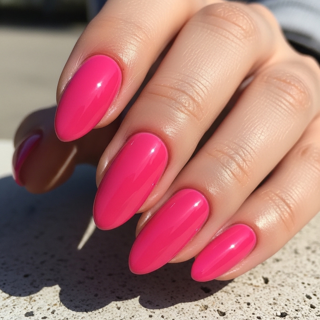 Hot pink reclaims its spotlight for Summer 2026 with a sleek, ultra glossy application. The shade is bold yet refined when applied evenly and paired with clean nail shapes.