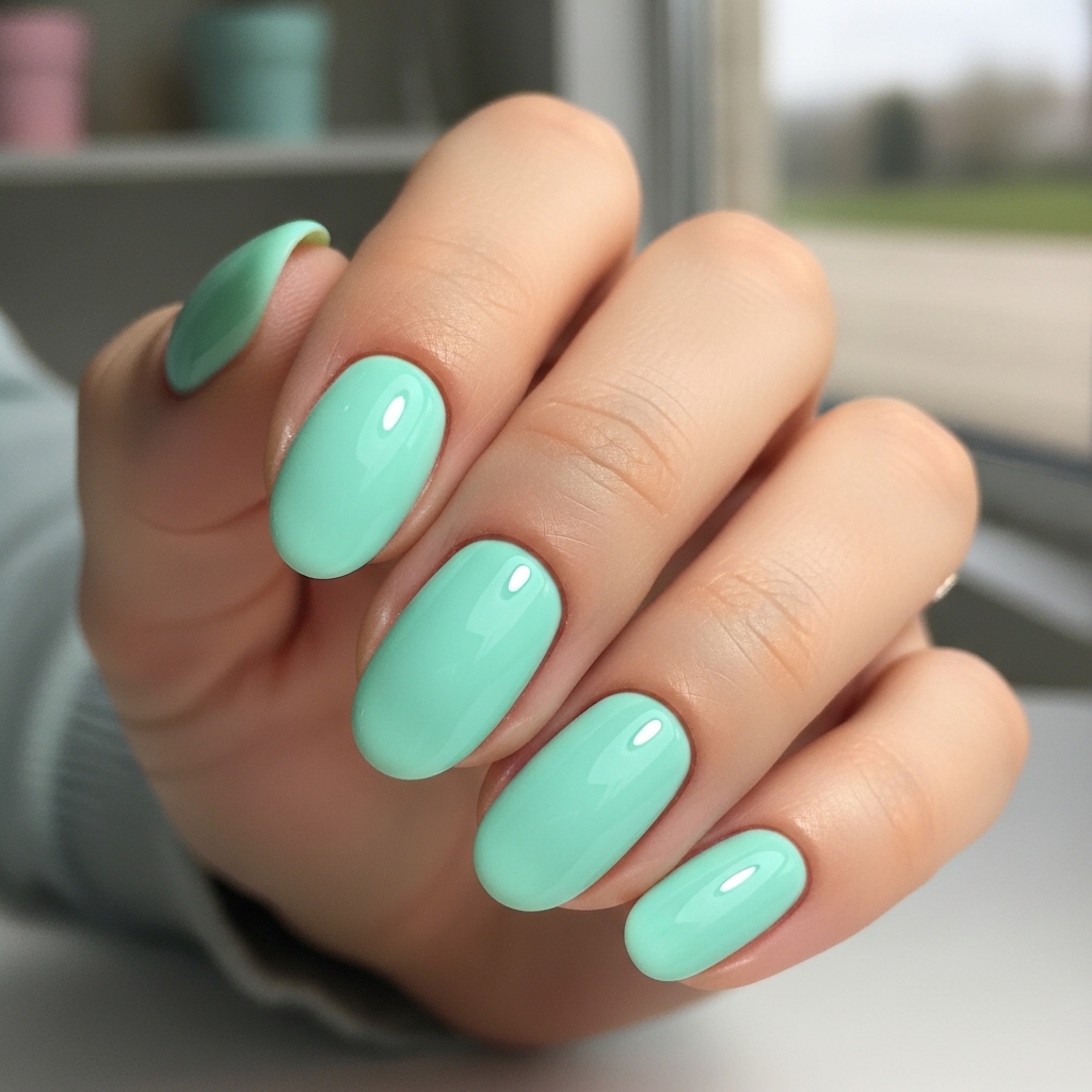 It complements white summer dresses, light tailoring, and casual denim. Short oval shapes make it easy to maintain and comfortable for active days. The glossy finish enhances the fresh quality of the color, making it a standout yet wearable option.