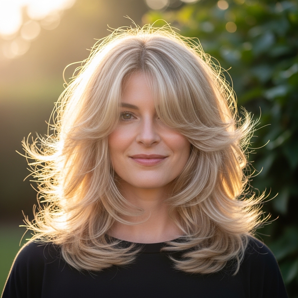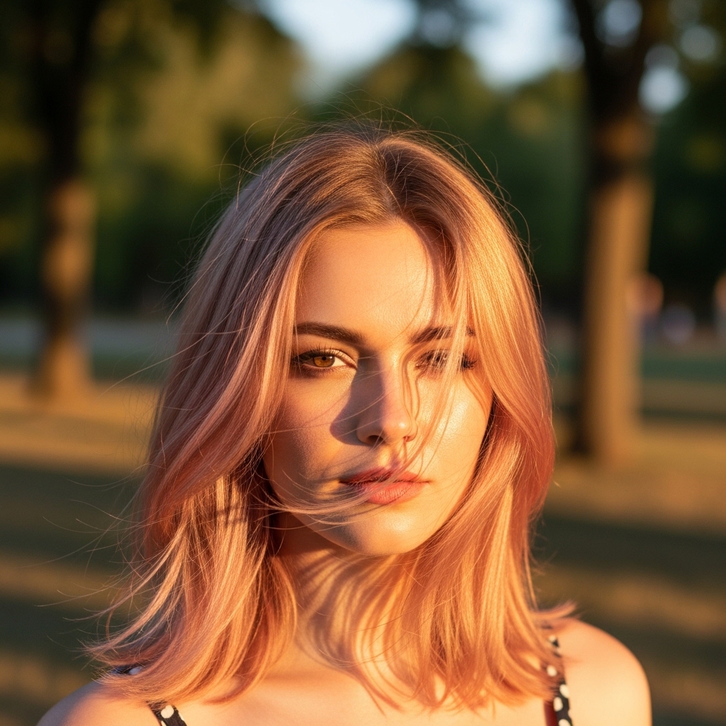 This trend blends warm blonde tones with a delicate rose tint, creating a soft, luminous finish that flatters a wide range of skin tones. Styled in layered cuts, the color catches light beautifully, adding dimension and movement. It is ideal for daytime outings, brunches, or relaxed evening settings where a subtle glow enhances the overall look. The softness of the hue ensures low-maintenance upkeep, while the layered styling keeps the look modern and fresh without feeling overly styled.