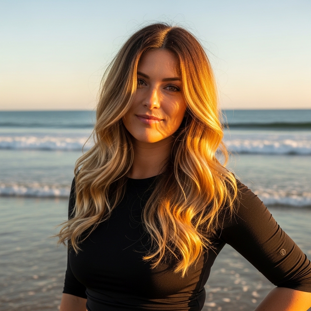 Golden honey balayage paired with soft waves creates a sun-kissed, natural effect that feels effortlessly polished. The gradual blending of tones adds depth while maintaining a light, airy finish. This style is perfect for beach days, casual gatherings, or vacation settings. The balayage technique reduces harsh regrowth lines, making it both practical and stylish for long-term wear.